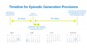 The idea behind episodic events is that the EPA has concluded that requiring VSQGs and SQGs to adhere to additional regulations and requirements won’t have a direct impact on protecting human health or the environment.